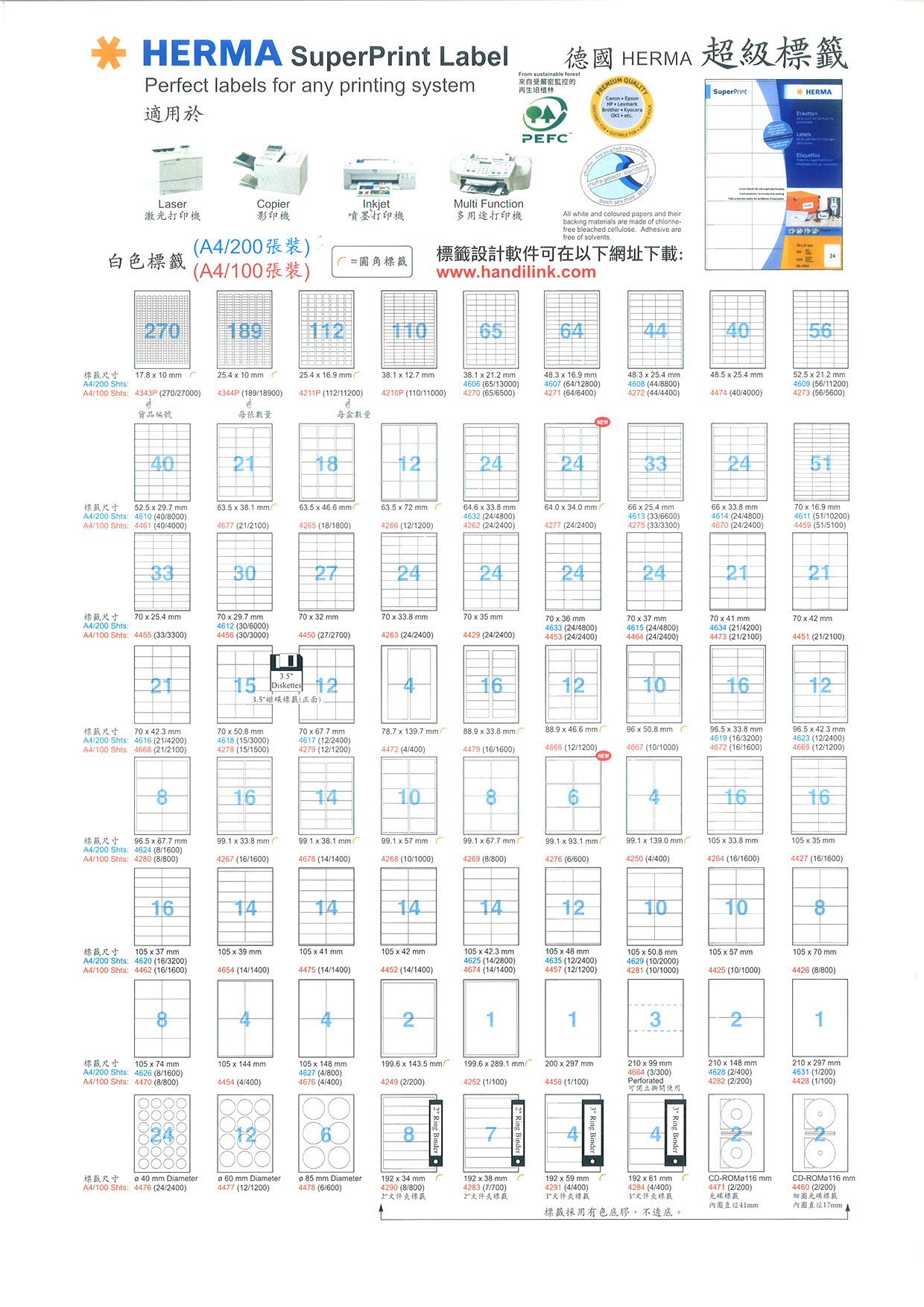 Herma 白色標籤 A4-100’s