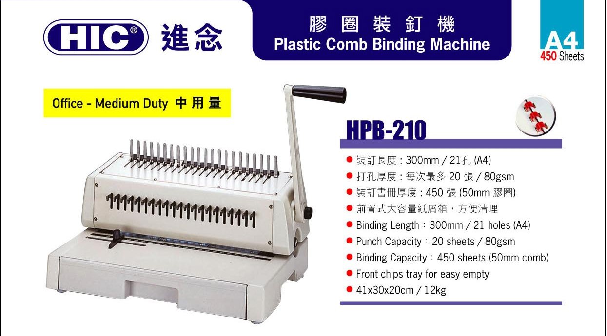 HIC HPB- 210 手動 膠圈裝訂機
