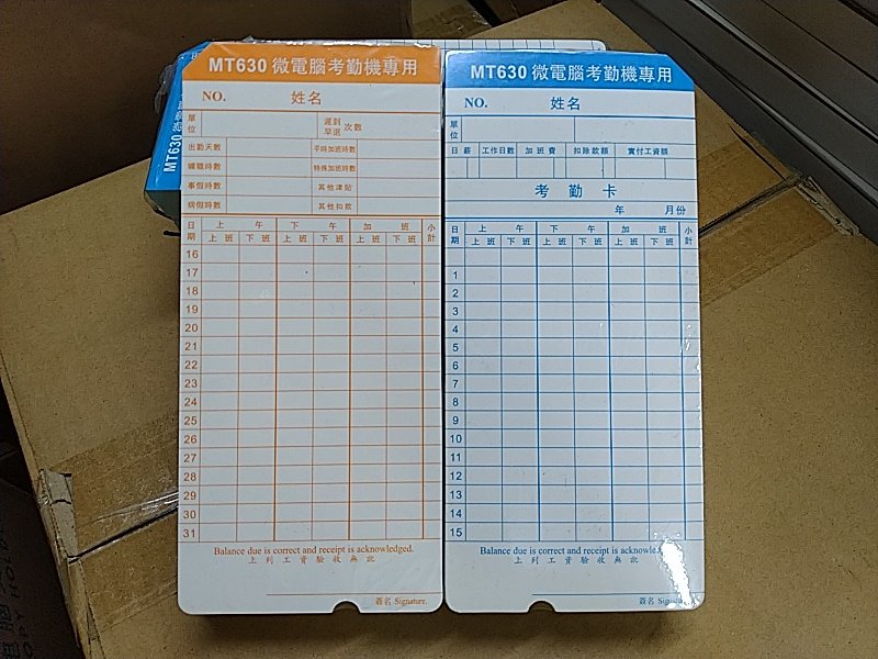 MT630 Time Card 數量