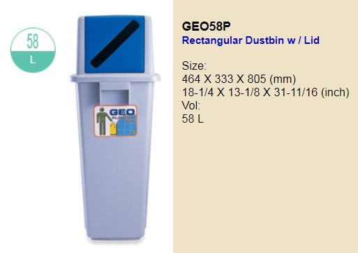 GEO 58P Rectangular Dustbin w/Lid